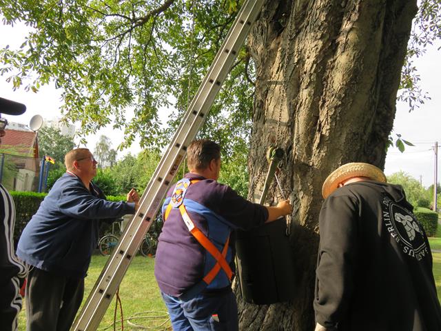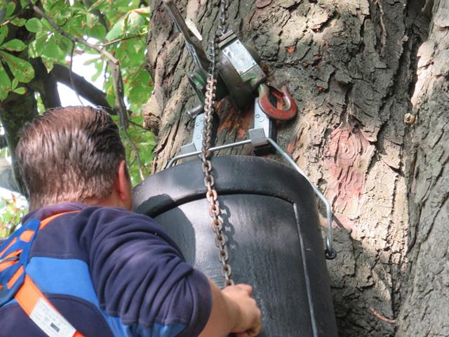 Nachdem immer wieder vermehrt Fledermäuse über unserer Kolonie gesichtet wurden, haben sich die Schnippel-Girls entschieden einen Fledermauskasten der Fa. Schwegler zu installieren, der gleichzeitig als Winterquartier genutzt werden kann. Aufgrund des Gewichts und der Höhe des war das gar nicht so einfach.