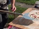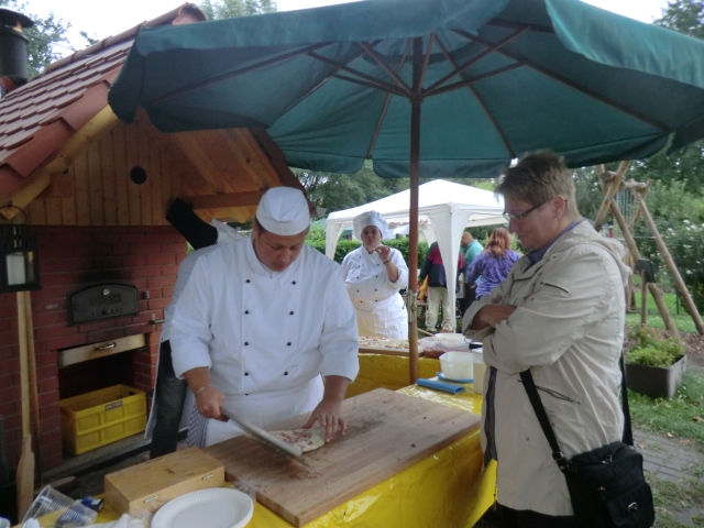 27. August: Trotz Schwierigkeiten mit dem Schornstein haben wir uns entschlossen zum Kinderfest Flammkuchen zu machen.